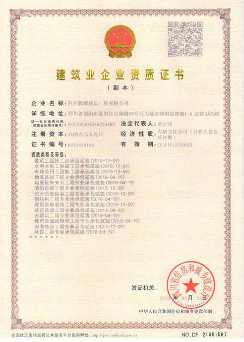 四川騰耀建筑工程有限公司  地址:四川省德陽(yáng)市旌陽(yáng)區(qū)南湖路66號(hào)九為藍(lán)谷德陽(yáng)總部港1-A-22棟1層  電話:0838-2507855